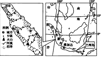 (1)简要概括苏门答腊岛的自然地理特征并填人下表中。