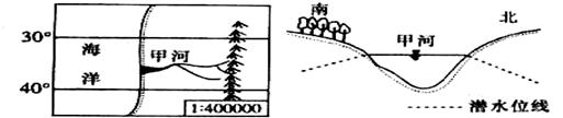 【小题1】甲河流中下游流域的主要补给形式和最大汛期的出现季节分别是