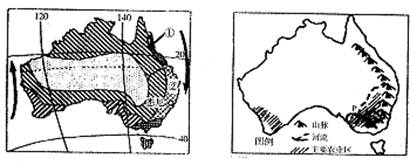 5、综合题 下左图是澳大利亚气候类型和洋流分布示意图,下右图是澳大利亚主要农业区分布示意图,读图回答下列问题。(12分)