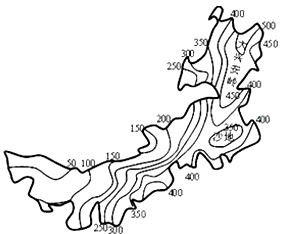 4、单选题 读内蒙古地区年降水量分布图(单位:毫米),回答下列各题。