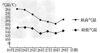 材料二:河南省郑州市10月23~29日的最高气温与最低气温变化曲线图。