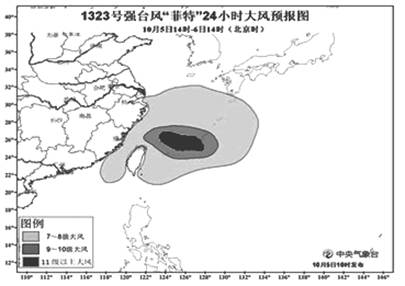 (1)据材料分析“菲特”会给我国东部哪些省级行政区带来强降水天气。(4分)