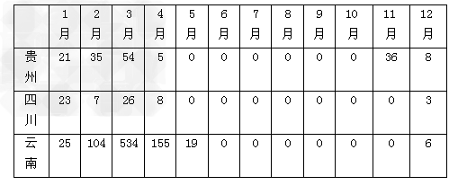 3、综合题 ?阅读某年气象卫星监测的我国西南三省林区火灾次数统计表(单位:次),回答问题。