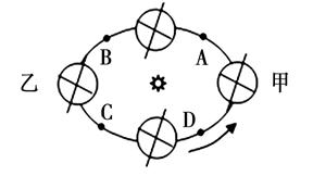 【小题2】若以中心圆圈代表太阳,地球位于甲处时,下列说法正确的是( )