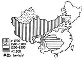 2、填空题 图为“我国太阳年辐射总量分布图”,读图完成下列各题