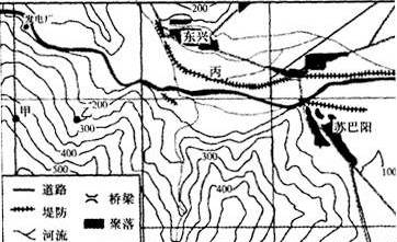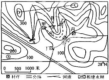 (4)若在该地区建设小城镇,甲、乙、丙、丁四个村庄发展条件最有利的是__     _村,理由是___                             ___。(2分)