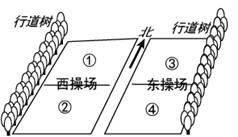 5、单选题  该图为我省平原地区某中学的操场和行道树示意图(晴天8:00前后,东操场大部分被行道树的树荫覆盖)。完成问题。