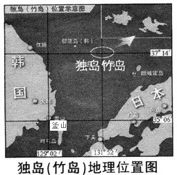 2、单选题 2006年4月25日韩国总统卢武铉在总统府青瓦台发表的韩日关系电视讲话中称,韩国将不惜在独岛问题上付出任何代价或牺牲,绝不会作出任何让步或妥协。结合独岛(竹岛)地理位置图,回答完成 题。