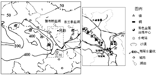 3、综合题 左图为我国某区域图,右图为黄河上游的有色金属“走廊”示意图。读图回答下列问题。