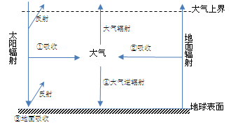1、单选题 读“地球大气受热过程示意图”,回答问题。