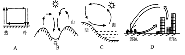 点评:本题结合图示考查各种热力环流的方向,试题难度中等,解题关键是掌握热力环流的形成。