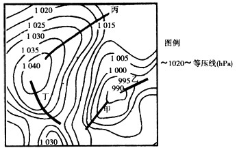 2、综合题 读材料一和天气系统示意图,完成下列各题(7分)。