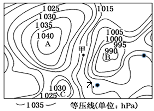 (4)读图判断此时甲乙两地气压梯度较小的是______,判断理由是__________________。