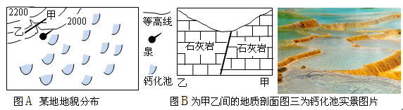 【小题2】结合图B,下列有关该地地质地貌形成过程的描述正确的是