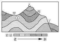 2、单选题  读下图“某地地质剖面图”,完成下题。