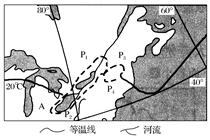 小题2:图中局部等温线走向的弯曲主要受地形影响,P1、P2弯曲主要受河流谷地的影响,气温较高而等温线应该向高纬度凸出,P3、P4经过地区有阿巴拉契亚山,地势高而气温低,等温线应该向低纬度凸出。故选A项。