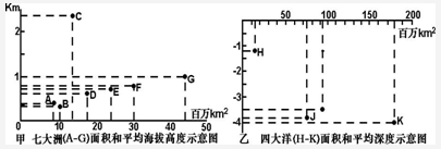 本题解析:小题1:本题考查世界海陆分布。第20题,结合七大洲的面积和平均海拔判断:A表示大洋洲;B表示欧洲;C表示南极洲;D表示南美洲;E表示北美洲;F表示非洲;G表示亚洲;利用四大洋的面积和平均深度判断:H表示北冰洋;J表示印度洋;K表示太平洋。