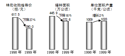 1.导致我国1998~1999年棉花播种面积下降的直接原因是2.我国1998~1999年棉花单位面积产量上升的主要原因是