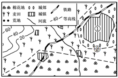 1.①城镇中最适宜布局2.②地距离城镇为2千米,从经济效益看,下列作物最适宜种植的是