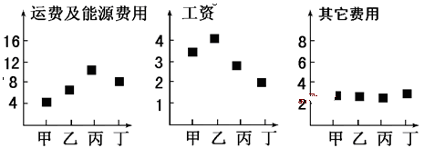 4、单选题 某企业计划在甲乙丙丁四地中选址办厂。经考察绘出四地的成本分析图(单位相同)。读图,回答下列各题。