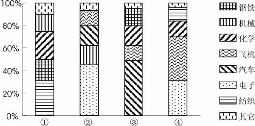 1、单选题 图1 是底特律、慕尼黑、西安、孟买四城市工业结构图,据图回答1 ~3 题。
