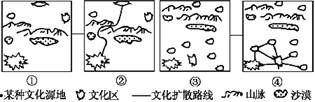 1.下列现象的形成过程,能反映①~②所示文化扩散类型的是