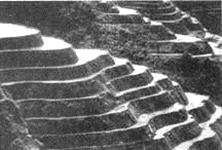 (3)B是梯田,该文化景观与人类?活动相关,而A则是人类?的产物。