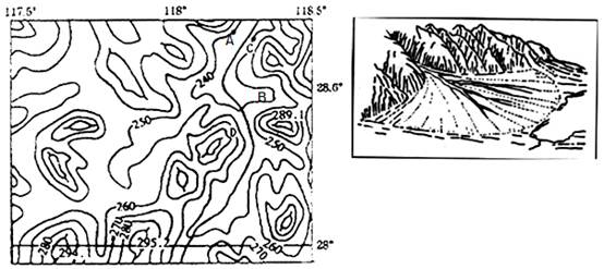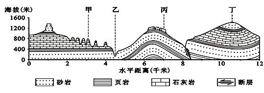 3、单选题 如图表示某种地貌类型,据图回答1~2题。?