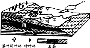 (2)图中B处地质构造属于__________(类型),成因是_________________________________________