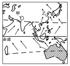 (1)材料一是____(1或7)月份季风分布图;若甲地是某气压中心,此时应是____(高或低)压中心 。(4分)