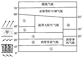 (4)除了亚洲东部外,其他地区有没有⑥气候分布?为什么?(4分)