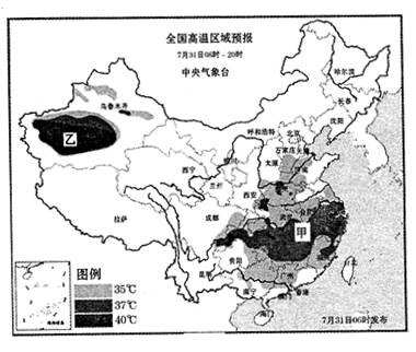 【小题3】当天,乙地区最高气温也在40℃以上,下列叙述与该地出现高温天气无关的是( )