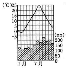 5、单选题 读某地气温曲线和降水柱状图,回答以下题目。