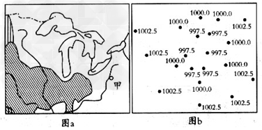 下图a是某区域简图,图b是图a中某时甲城市近地面气压分布状况图