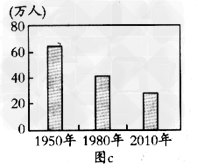 下图c是甲城市60年来人口数量变化示意图
