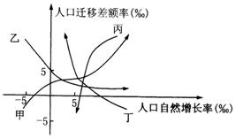 本题解析:1:甲曲线人口迁移差额率和人口自然增长率都为正数。