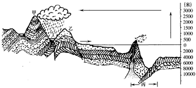 (1)从地质构造上看,甲山地属于_______构造,甲处地貌形态形成的原因是_____________________。