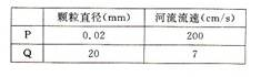 1.欲使直径为 0 .1mm处于搬运状态的颗粒物堆积至河床.河流流速至少应降为2.表中 P 、 Q 两颗粒物所受主要外力作用分别是