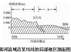 (2)黄河流经A地形时,河水与两侧地下水的关系是??,原因是??。