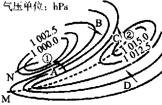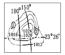 2、综合题 读“北半球某区域等压线分布图”,回答下列问题。(15分)