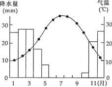 4、单选题 读某地多年平均气候资料示意图。完成下列下列问题。