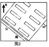 2、单选题 我国某城市居民小区,环境优美,楼房采光条件好,楼房之间对采光影响不大。小区内一栋楼房,在北京时间夏至日(晴天)14︰40时太阳光线从南偏西30°方向射向阳台,该日阳台日照时间是10小时40分钟。读图2回答问题。