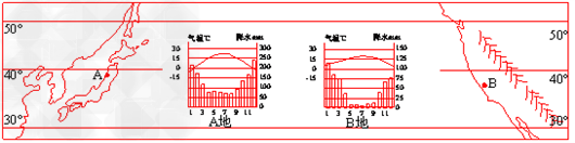 2、单选题 读图,回答下题导致图中A 、B 两地降水季节差异的主要因素分别是