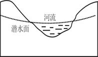 本题解析:读图可知:河流的水面低于潜水面,所以此季节河流可以得到潜水的补给。故选D。