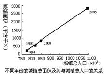4、单选题 下图反映了某地区不同年份的城镇总面积及其与城镇总人口的关系。从图中可知