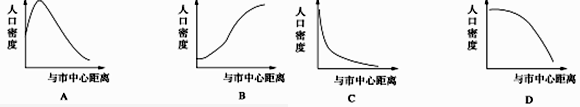 2、单选题 能正确反映城市人口密度与距离市中心的远近两者之间关系的是