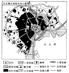 1、综合题 阅读“东京城市合理规划示意图”(下图),回答下列问题。