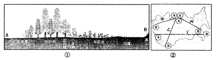 1.①图中植被、农业带的分布与②图中甲~丁四线段所经地区一致的是2.①图中草原带形成的主要原因是