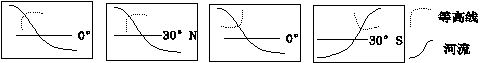 考点:本题考查河流流向与等高线分布的关系和地转偏向力。