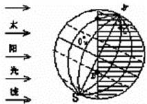 4、综合题 下图为地球某日太阳光照示意图,图中阴影部分为黑夜,其他地区为白昼,读图判断。(10分)